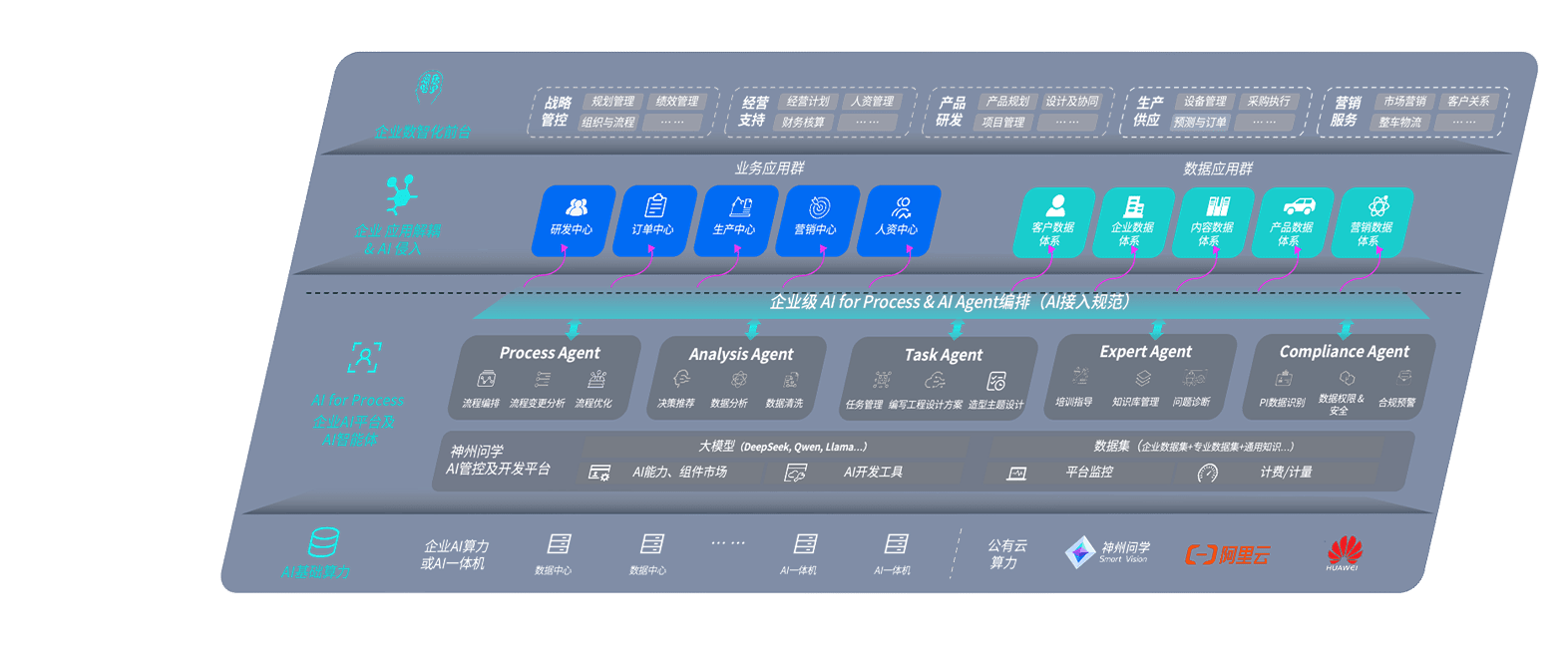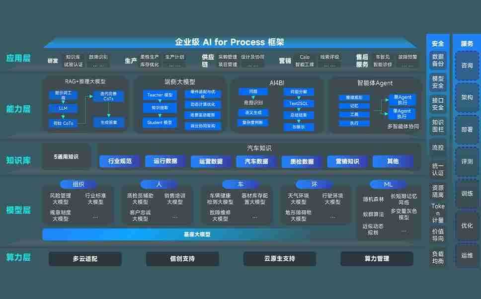 端到端的一站式AI工作空间深度融合了从企业战略规划到日常经营的全流程业务板块,,,,定向解决车企内部领域多、、、部门多、、、、链条长、、、场景碎片化等难题,,,支持车企快速构建以AI为核心的生产力写作体系,,实现任务执行与AI能力的无缝集成与交互